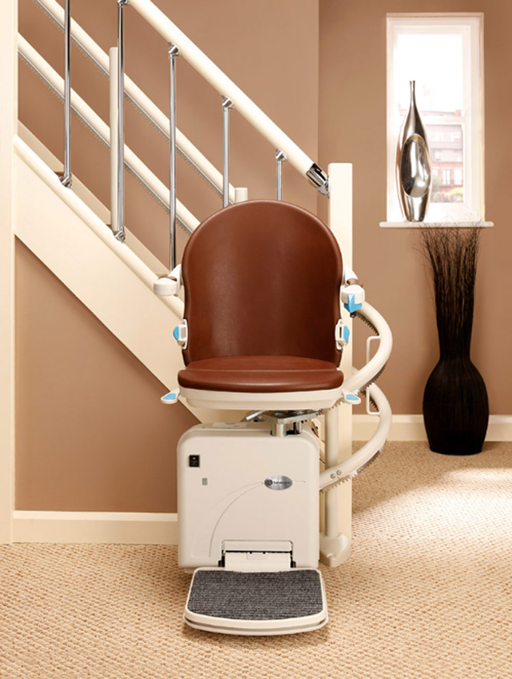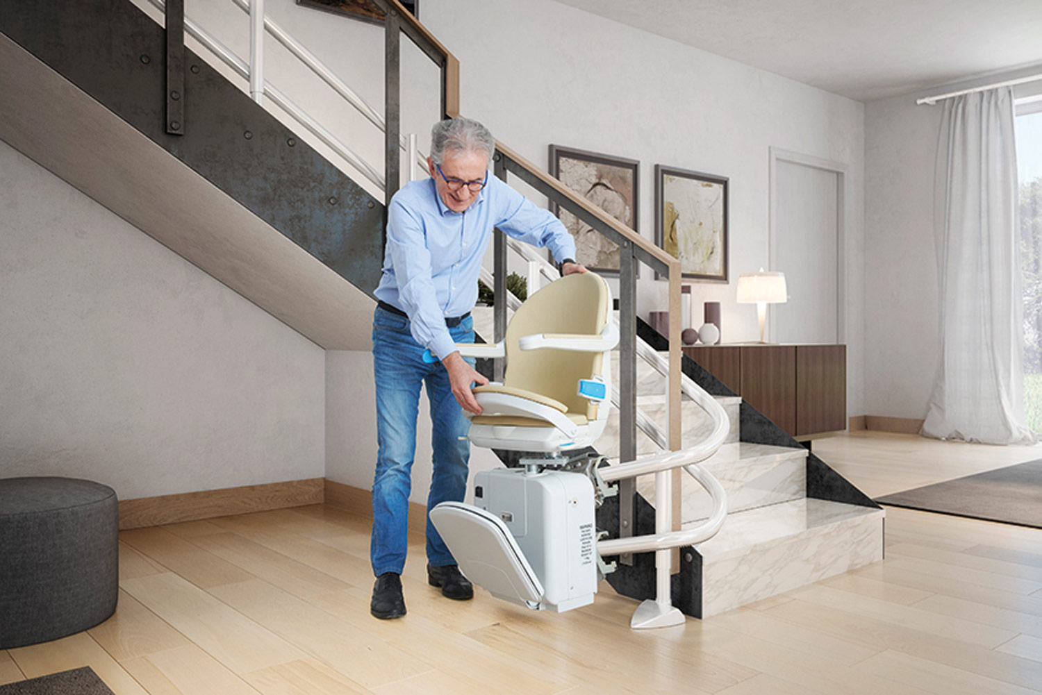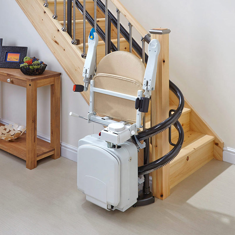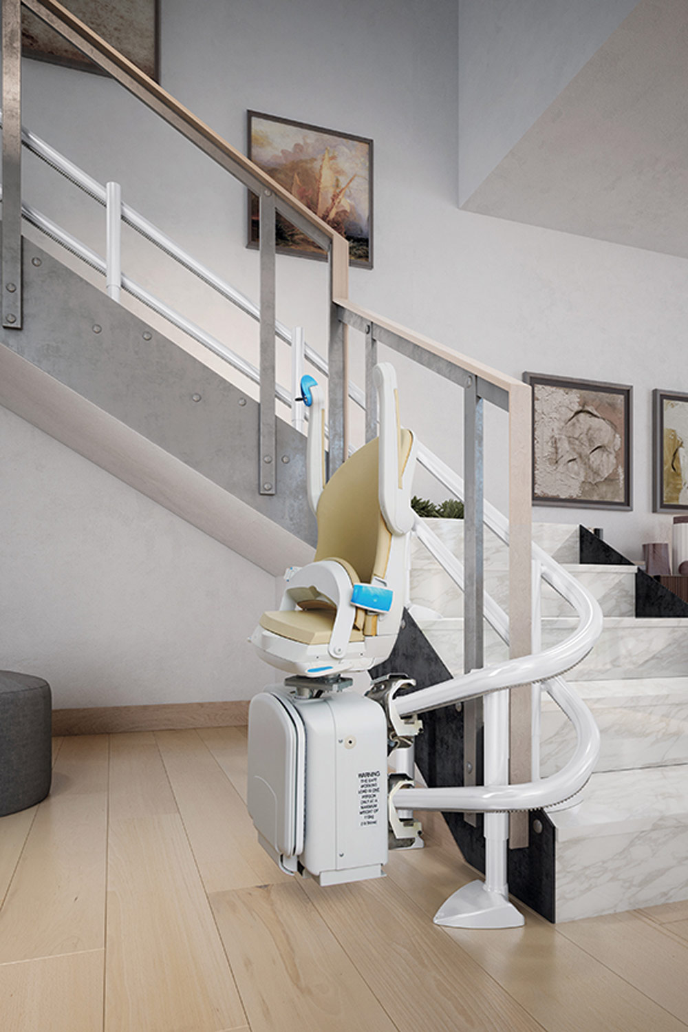 Com o sistema duplo rail esta cadeira adapta-se a qualquer tipo de escada curva e proporciona-lhe uma viagem suave e harmoniosa.