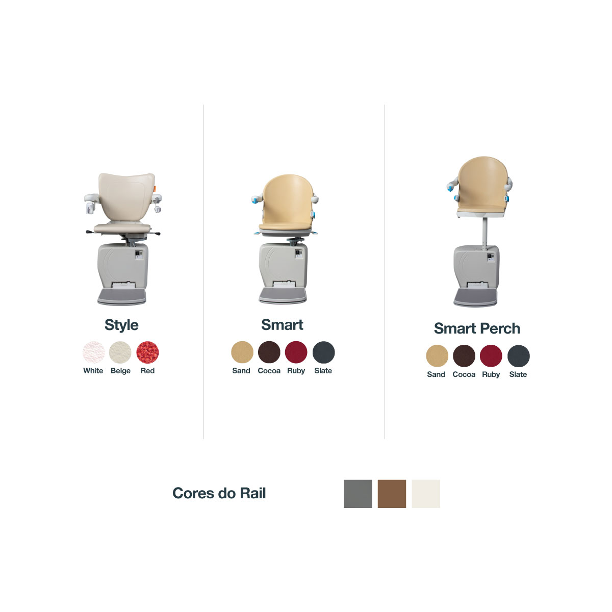 Para além de todas as funções standard, permite o upgrade para o apoio automático de pés (ao fechar o assento o apoio de pés rebate automaticamente) e o assento com rotação automática possibilita um desembarque prático e seguro do utilizador no patamar superior.