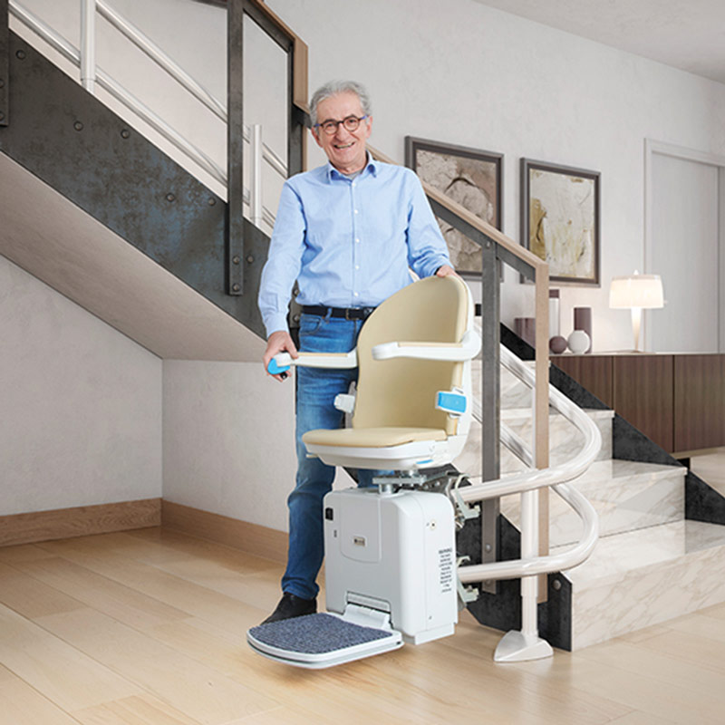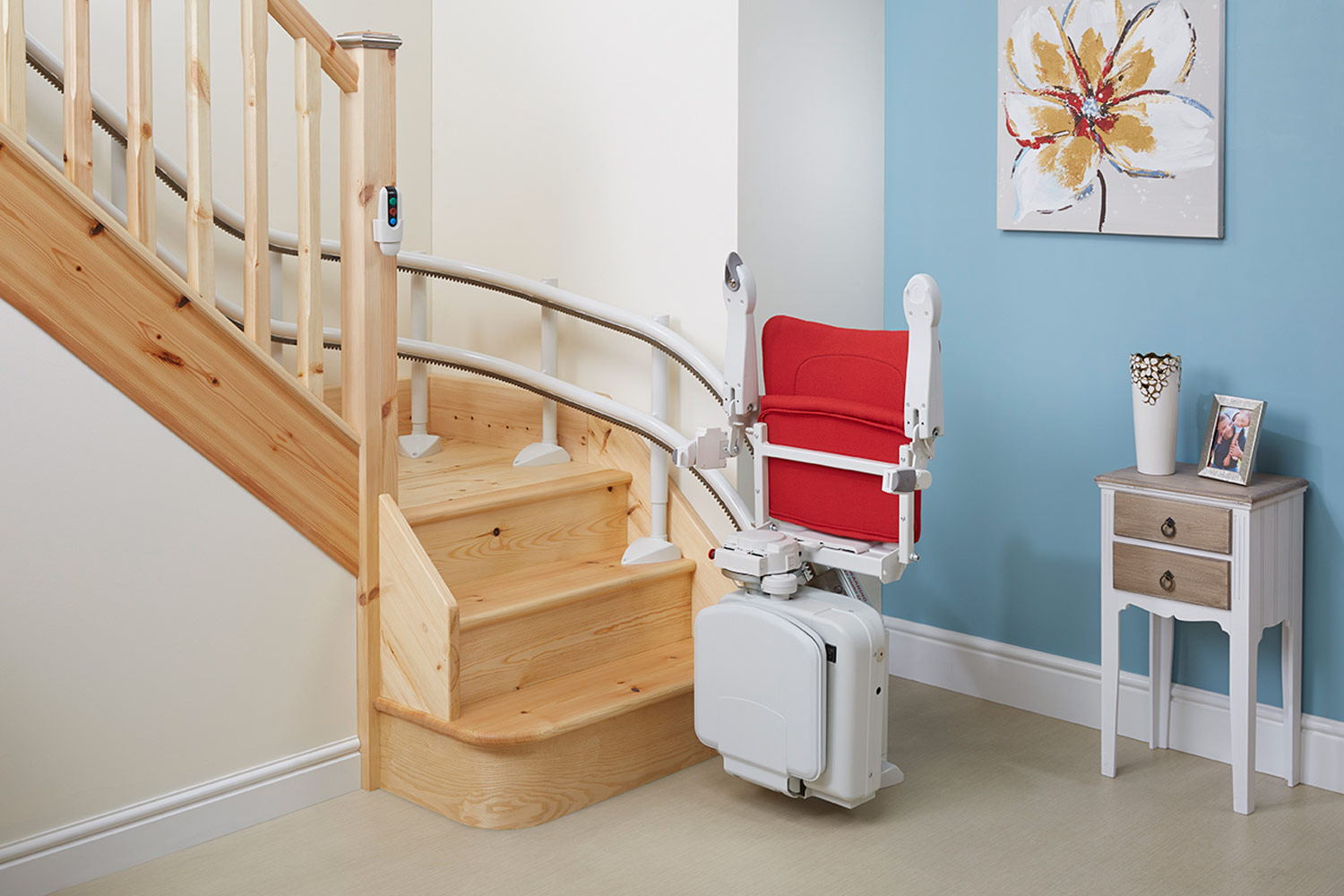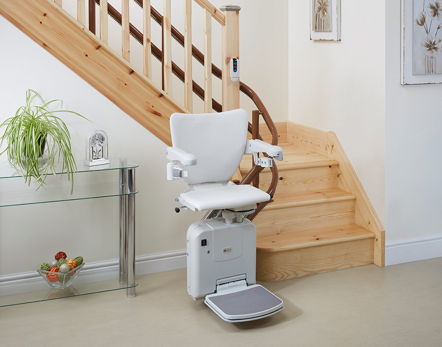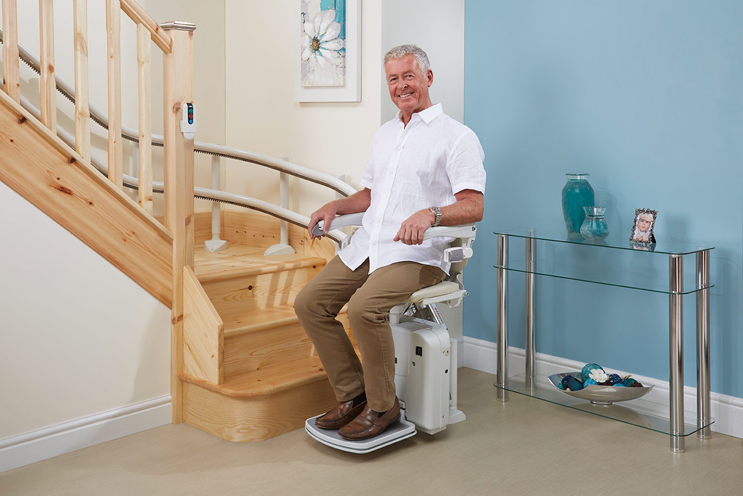Se pensa em instalar uma cadeira elevador e as suas escadas têm curvas, o assento Style e o sistema duplo rail oferecem uma solução segura e de confiança.