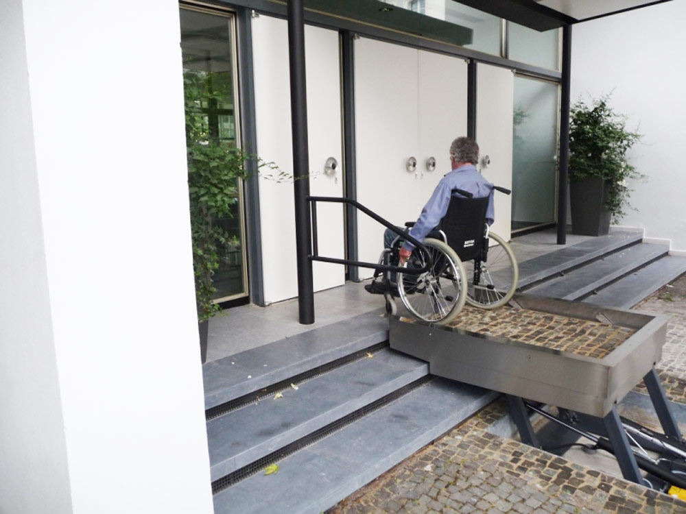 O controlo da plataforma pode ser efetuado via rádio,através de um mini comando ou de botoneira em coluna de exterior instalada na própria plataforma!