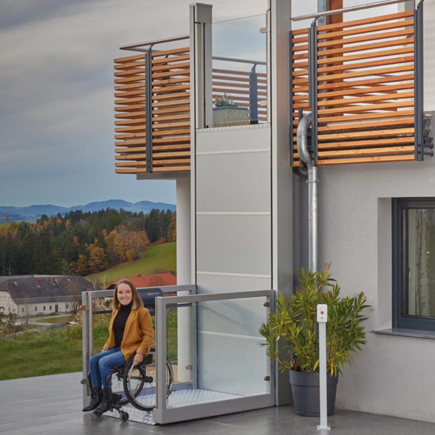 O Quattroporte é o nosso novo elevador vertical. Aproveite a sensação de flutuar suavemente para cima enquanto desfruta da vista panorâmica. Não é necessário nenhum trabalho estrutural ou de escavação para a montagem desta plataforma. A porta instalada em todos os lados permite-nos a flexibilidade máxima no planeamento da instalação.