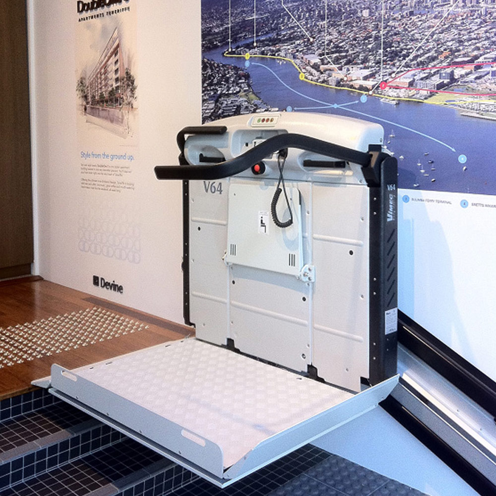 A V65 é capaz de superar inclinações retas ou variáveis, adaptando-se a inclinações de uma rampa ou de um lance de escadas.