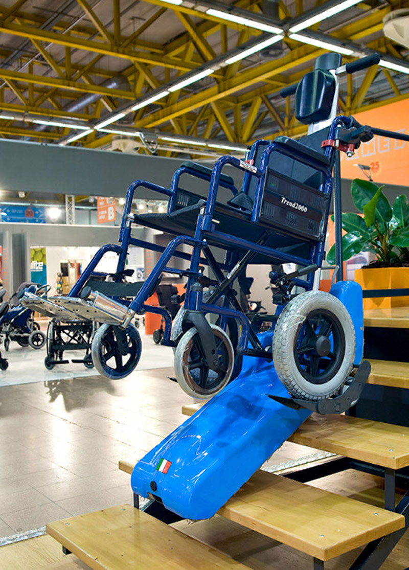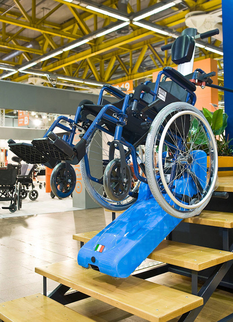 Estudado para ultrapassar escadas retas ou com patamares, com forma quadrada ou retangular em absoluta segurança, e sem ter o risco de as estragar graças às peculiares características das correias de tração que asseguram uma elevada aderência, e não deixam marcas.